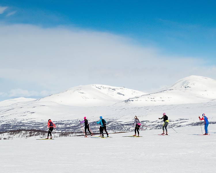 Längdåkning i fjällandskap
